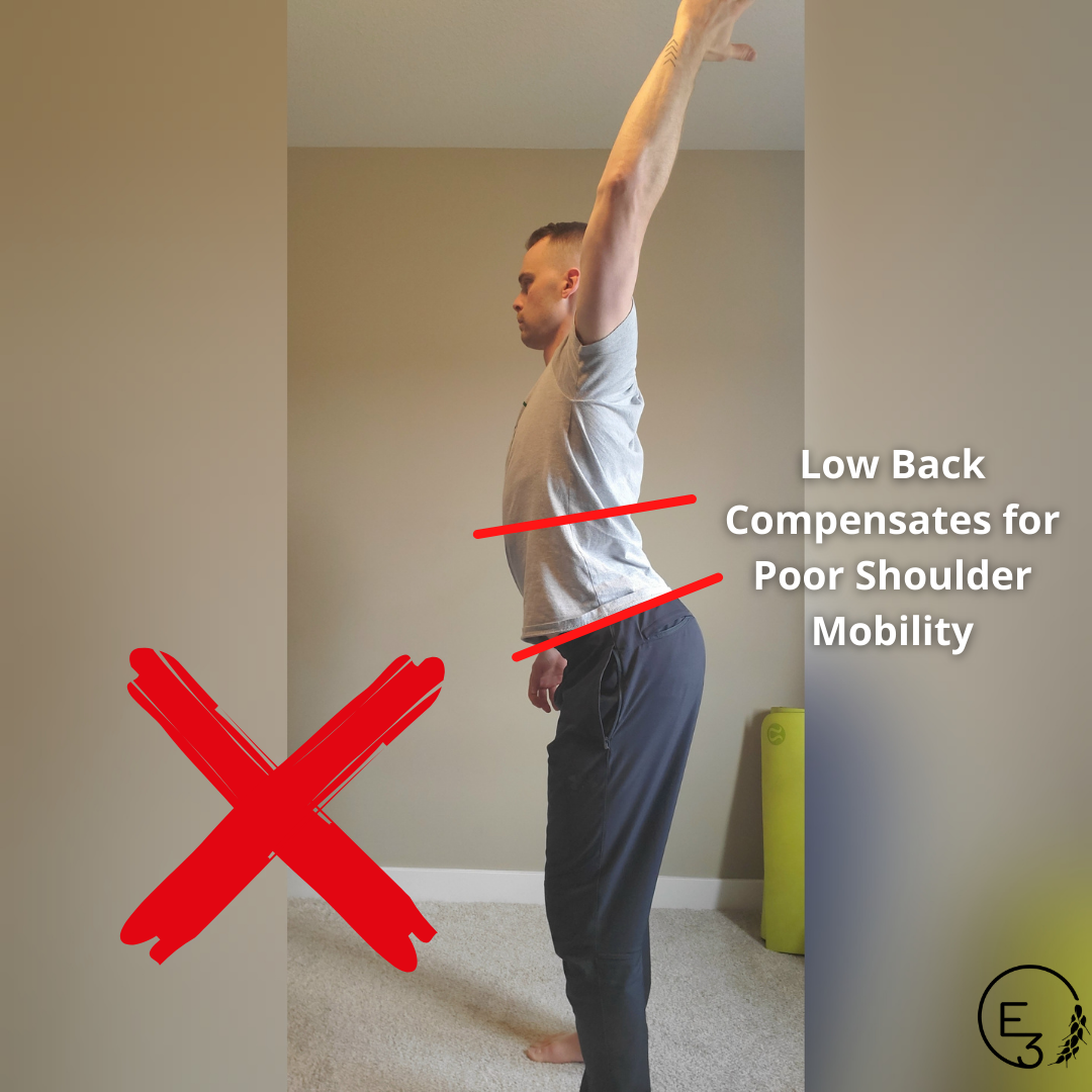 If you are not able to properly lift your arms overhead, your body will compensate by either overarching your low back or by using improper shoulder mechanics. Here is one easy way to see if you are ready to lift overhead.