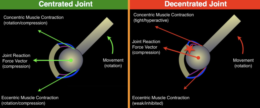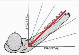 When we are in the scaption plane, the middle of the ball is in the middle of the socket, and the golf ball is balanced. This is referred to as a centrated joint. This means that ALL of the muscles and tissues surrounding our shoulder can share all of the forces put on our shoulder joint while we work out.