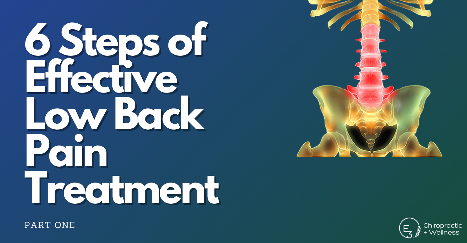 After reading this, you will completely understand what low back pain treatment consists of at E3 Chiropractic + Wellness. We will be going on the journey of one of the patients here, showcasing their history, explaining what was injured, why it became injured and presenting our treatment process.