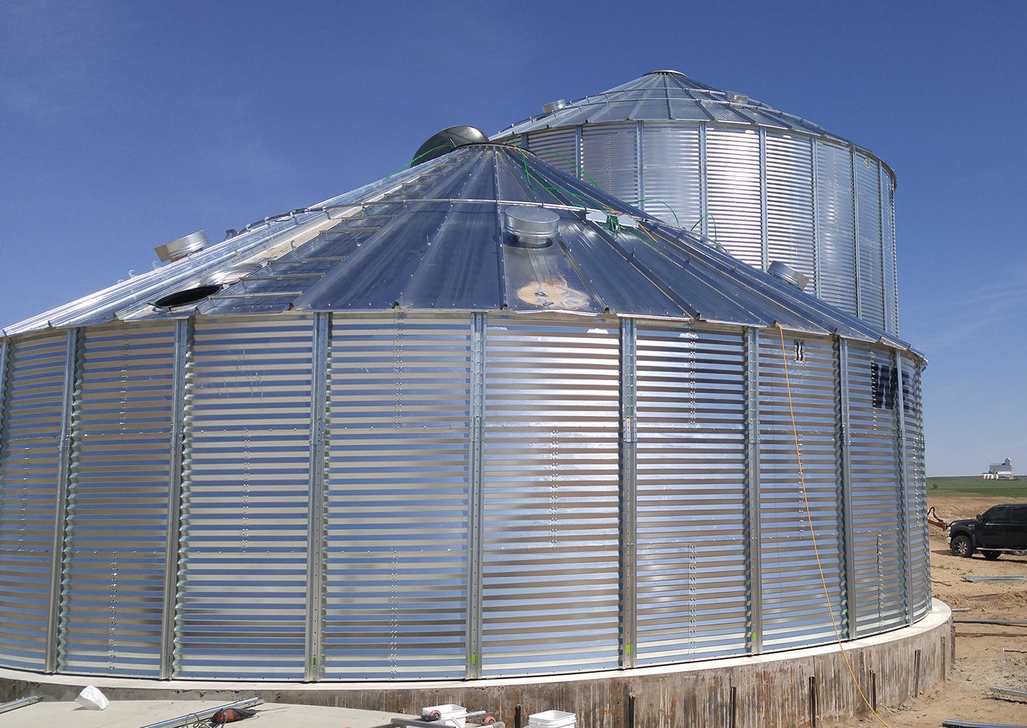 The ripples of the grain bin add additional strength to the container. This extra strength prevents the bin from breaking due to the pressure from the grain inside.